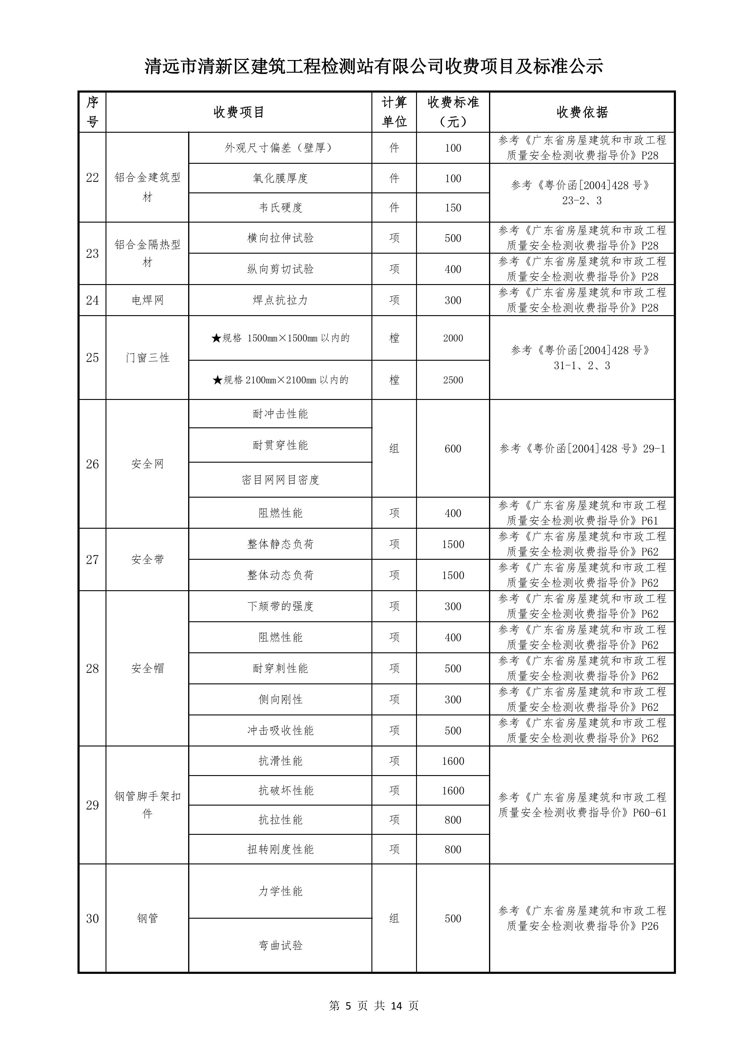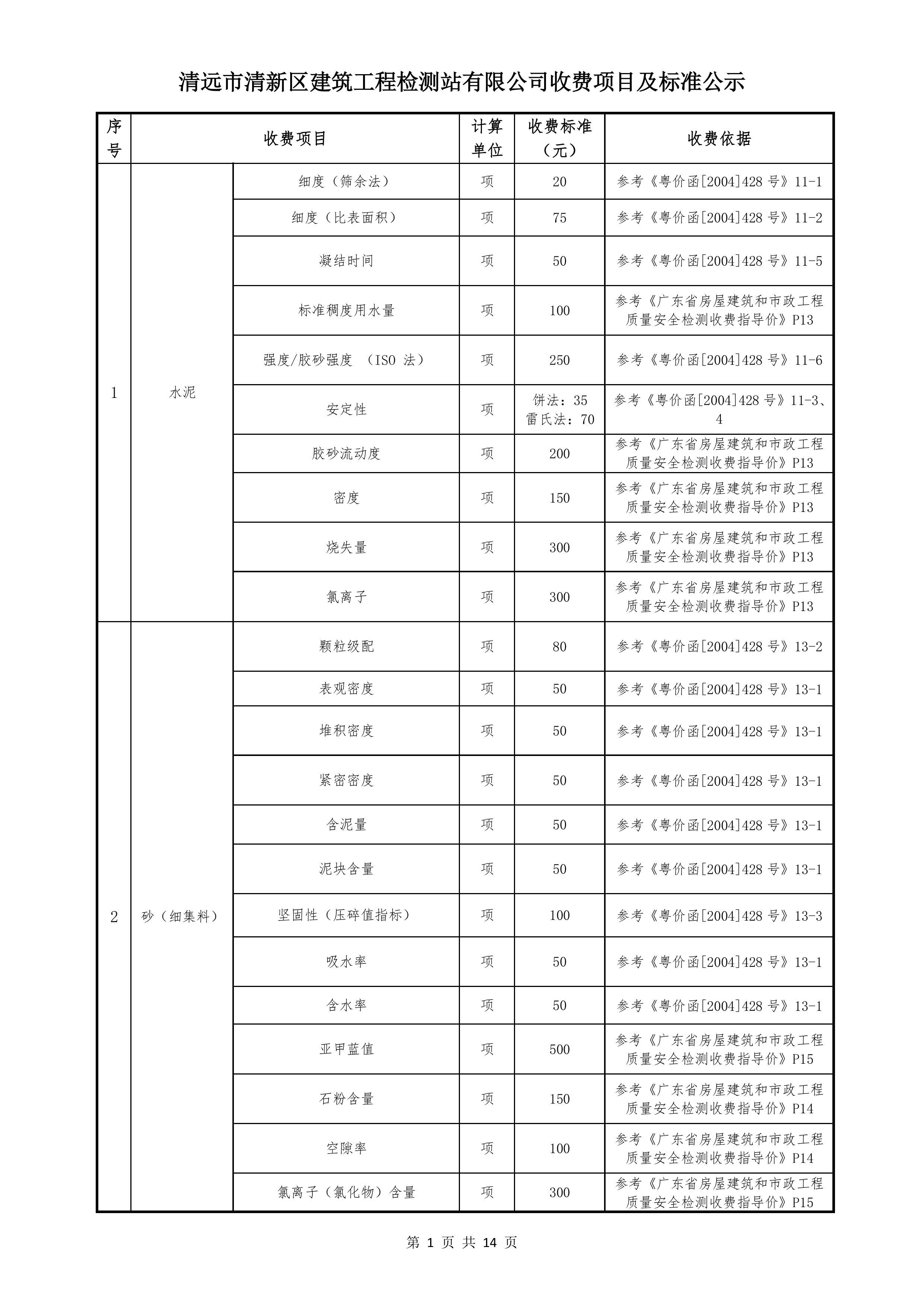 清遠(yuǎn)市清新區(qū)建筑工程檢測站有限公司收費(fèi)標(biāo)準(zhǔn)2025122